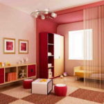 - Стены оформить разными цветами. Использовать можно обои двух цветов, но с одинаковой фактурой, покрасить в разный цвет и т.д.