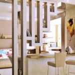Не всем нравится идея поставить перегородку в комнате. Но она может быть не цельной. Очень часто «монолитную» перегородку возводят до высоты метра или чуть более, а выше делают что-то ажурное, пропускающее свет. Так решается проблема естественного освещения и конструкция не выглядит столь тяжеловесно, как стена.