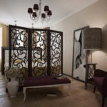 Ширмы есть традиционные — переносные, складные. Но далеко не обязательно, чтобы они имели «старорежимный» вид. Нет, традиционного вида ширмы — обтянутые гобеленами — хороши для классических интерьеров. А те, которые родом из «шестидесятых» — крашенные, из дерева и фанеры — отлично смотрятся в лофте или арт-деко. Если у вас гостиная спальня оформлена в таком стиле, вам вообще несложно найти нужный вариант. А вот для современных интерьеров нужны другие материалы и фактуры и тут придется постараться.