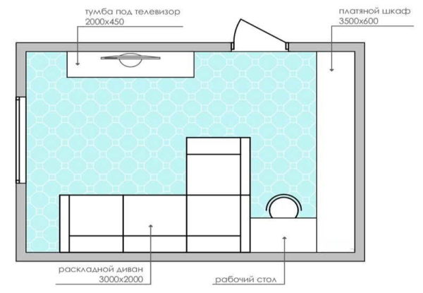 Один из вариантов оборудования гостиной-спальни в одной комнате
