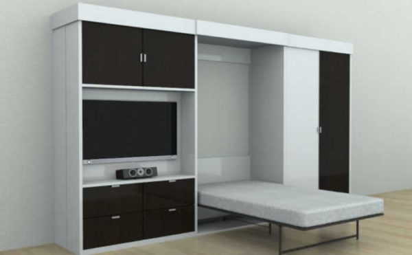 - Шкаф. В закрытом состоянии выглядит как обычный шкаф, откидывается, получается кровать.