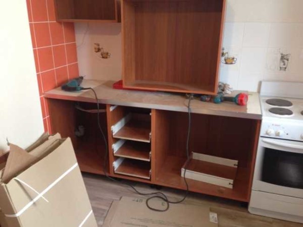 Начало сборки кухонной мебели