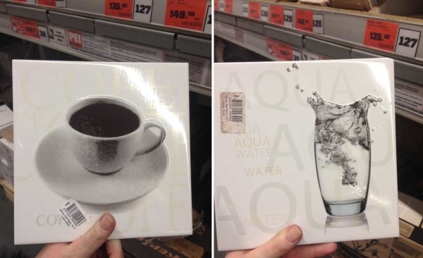 Потолок был нормально выровнен ранее, его просто покрасили свежей водоэмульсионкой. Выбор стойматериалов начали с плитки для кухонного фартука (нашли в OBI). Дверцы кухонного гарнитура внизу будут оранжевые, потому яркие цвета исключили сразу. Остановились на белой и оранжевой, по белой — несколько декоративных плиток. В них удачно присутствовали бежевые тона, которые почти точно совпадают с цветом дверец навесных шкафов.