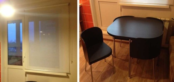 Штора — рулонная, стол и стулья — легкие