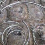 Для крепления пружинного блока можно использовать мощные U-образные скобы, и лучше, если ножки у них будут заточенными. Но степлер с такими не работает, поэтому из стальной проволоки диаметром 1,5 мм нарезали скоб, забиваем молотком.