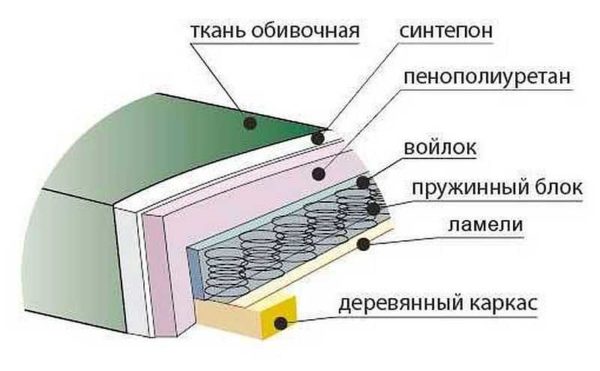 Строение диванных сидений может быть многослойным