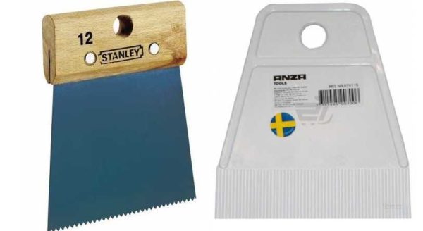 При приклеивании зеркал большой площади технология немного меняется. На выровненную, загрунтованную и высушенную стену наносится клей, распределяется по всей поверхности шпателем с очень мелким зубом. Такие шпатели используются для приклеивания пробки. Не стоит их путать с теми, которыми наносят клей на плитку. У них слишком большое расстояние между зубцами. На подготовленную поверхность приклеивается зеркало. Его переносят и удерживают при помощи специальных ручек с присосками.