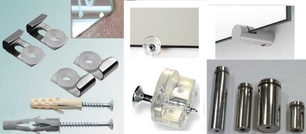 Если через некоторое время зеркало придется снять/заменить, удобнее его установить на держатели. Они есть двух видов: