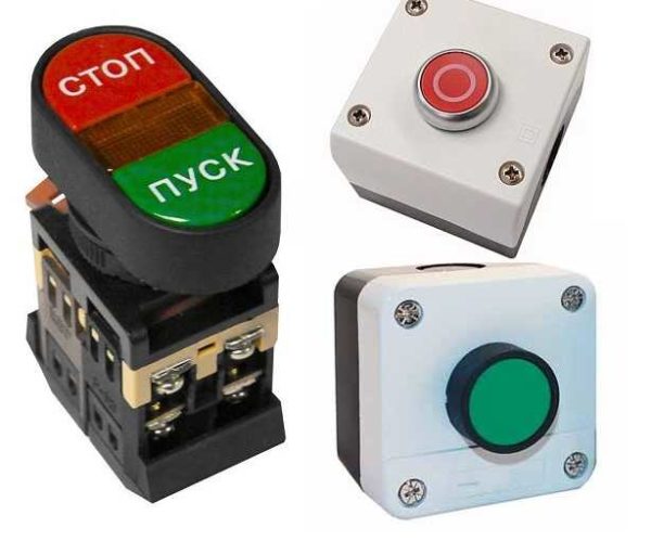 Перед тем, как перейдем к схемам, разберемся с чем и как можно подключать эти устройства. Чаще всего, требуются две кнопки — «пуск» и «стоп». Они могут быть выполнены в отдельных корпусах, а может быть единый корпус. Это так называемый кнопочный пост.