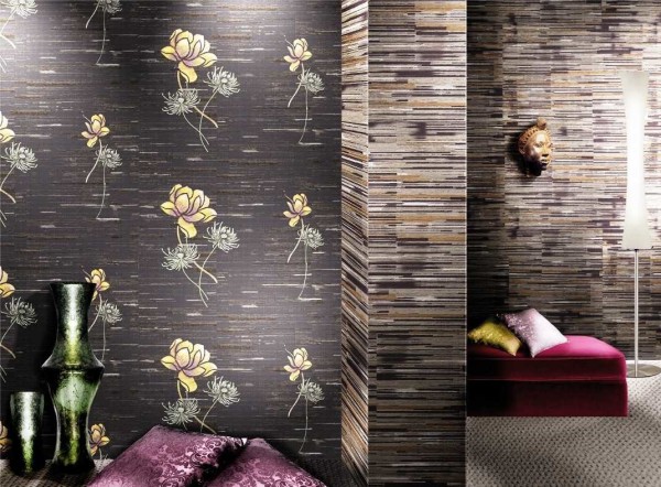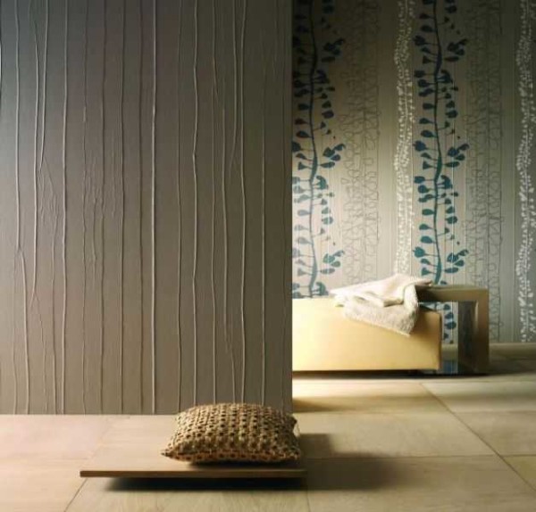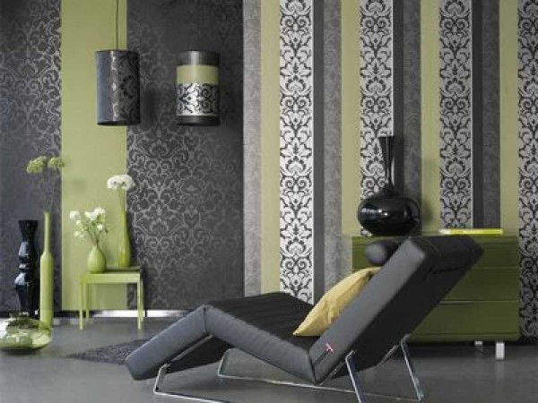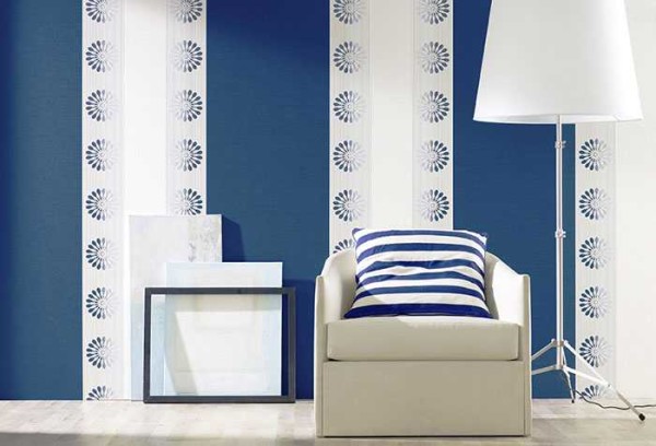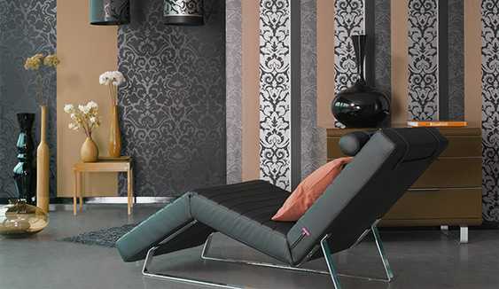 Полосы могут быть разными — по цвету или рисунку. Фактура при таком сочетании обоев должна быть одинаковой, иначе получится непонятная мешанина. Для такого комбинирования проще всего работать с одной коллекцией. Дело в том, что большинство кампаний выпускают несколько рисунков, сочетающихся между собой. Как правило они есть в нескольких гаммах. В одной коллекции есть два-три однотонных фона и несколько вариантов с рисунками.