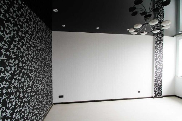 Кроме высоты и ширины обращаем внимание на геометрию. Во-первых, на площадь. Если помещение большое, можно использовать более насыщенные или темные оттенки. Это позволит зрительно уменьшить габариты. Если однотонные темные стены вас не радуют — найдите обои темного тона со светлым крупным рисунком. Как правило это растительные мотивы, встречается абстракция или геометрия.
