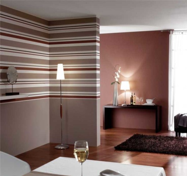 Прием, который можно отнести к классике дизайна. Он используется давно, но при нынешнем обилии расцветок и фактур получил совершенно новое звучание. Этот прием чаще используют в комнатах с небольшой площадью, но высокими потолками. Убрать эффект»колодца» и помогает горизонтальное деление комнаты. Это может быть просто горизонтальная полоса, которая опоясывает помещение. Часто она привязывается к высоте подоконников, а вообще проводится при делении плоскости на три части и может находится в нижней или верхней трети.