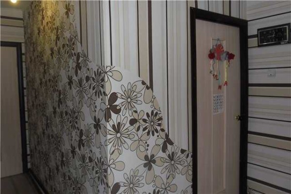 Поклейка обоев двух видов: выступающие «остатки» несущих стен можно превратить в достоинство