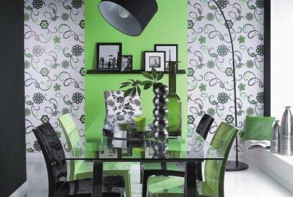Обои разных цветов в одной комнате используют и в том случае, если необходимо подчеркнуть зонирование. Например, в квартирах студиях таким способом разделяют различные функциональные зоны: столовой и отдыха.