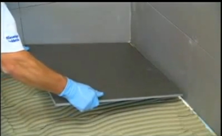 • Аккуратно прикладываем плитку и прижимаем ее, чтобы она самопроизвольно не двигалась;