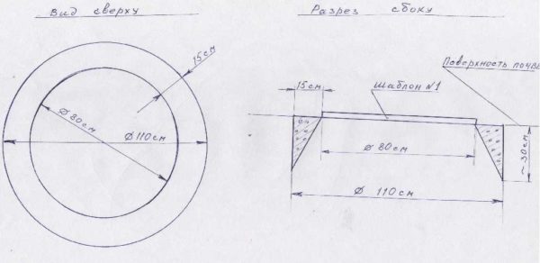 По периметру будущего погреба копаем котлован, который в разрезе имеет треугольную форму