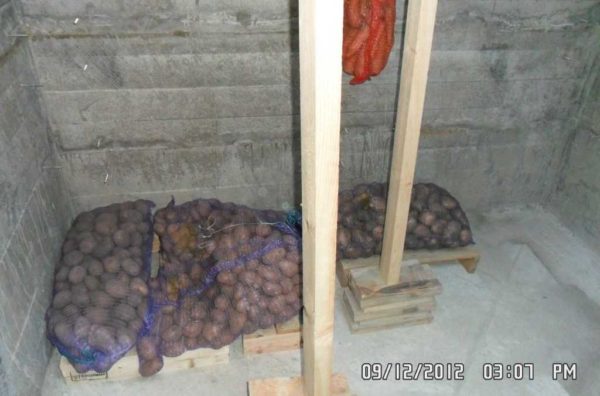 Подпорки внутри оставлены на два месяца. Затем почти все убрали, оставив только парочку- на всякий случай. В погребе появился первый урожай.