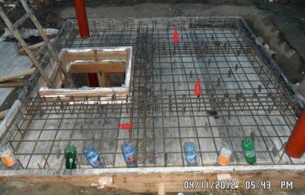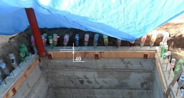 Те бутылки, которые надеты на арматуру, необходимы, чтобы пленка, накрывающая бетон не рвалась. Очень полезная оказалась идея.