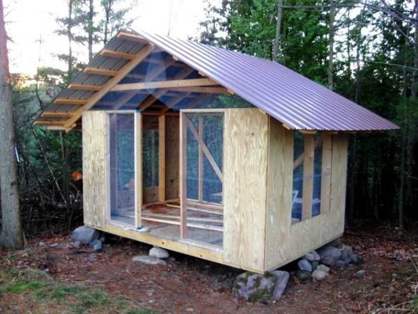Для стен курятника курятника материал выбирают в зависимости от предполагаемого режима использования. Для летнего курятника подойдут доски, фанера, ОСП. Такие постройки делают по принципу каркасного домостроения: собирают каркас из бруса, обшивают его досками или листовым материалом. Задача таких построек — защищать от солнца, ветра дождя и с ней они справляются отлично.