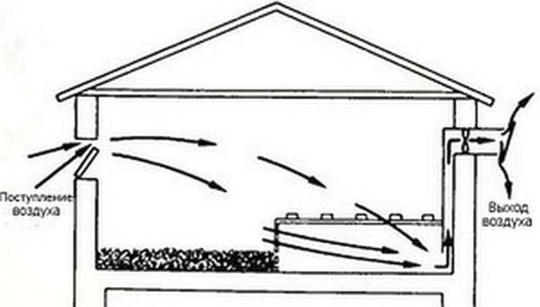 Отток воздуха из курятника (вытяжка) — это труба, проведенная через крышу или верхнюю часть стены. На улице труба еще на некоторое расстояние поднимается над кровлей и заканчивается грибком или козырьком — для защиты от осадков и листвы. Располагают приток и вытяжку в противоположных углах, чтобы воздух проходил наибольшее расстояние. Этот тип вентиляции называют естественным, но он не всегда работает стабильно.