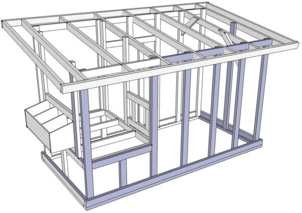 Стены в курятнике возводят по выбранной технологии. Тут никаких нюансов нет. В утеплении, собственно, тоже, но про утепление рассказать стоит, так как все-таки эта постройка имеет свои особенности.