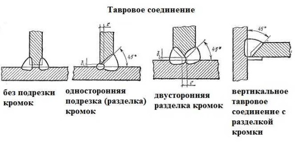 Типы сварных швов: тавровое соединение с разделкой (обрезкой) кромок и без
