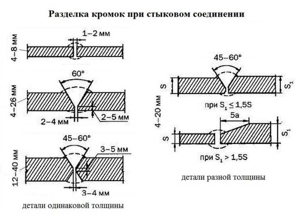 Разделка кромок металла при соединении деталей встык (Чтобы увеличить размер картинки щелкните по ней правой клавишей мышки)
