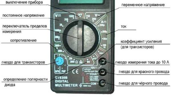 Положение переключателя диапазонов измерений на мультиметре