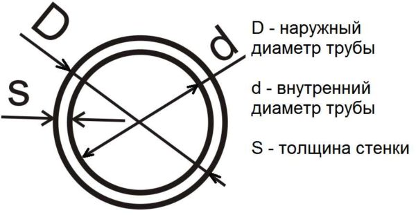 Внутренний и наружный диаметр трубы, толщина стенки