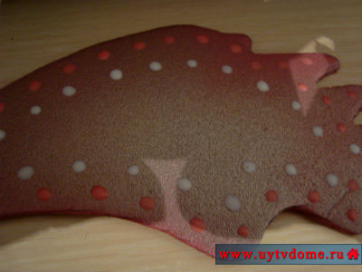 ► Далее смешиваем на листе пенополистирола белую акриловую эмаль и капельку красной гуаши, получается нежно-розовый оттенок, в эту краску окунаем тонкую кисточку и рисуем капельки на деталях бабочки. Затем перемешиваем белую акриловую эмаль с большим количеством красной гуаши, так чтобы получился насыщенный розовый оттенок, опять же данной краской рисуем точечки на всех детальках. В завершении рисуем точки обычной белой акриловой эмалью. Крылья также по желанию можно украсить стразами. Оставляем детали для просушки.