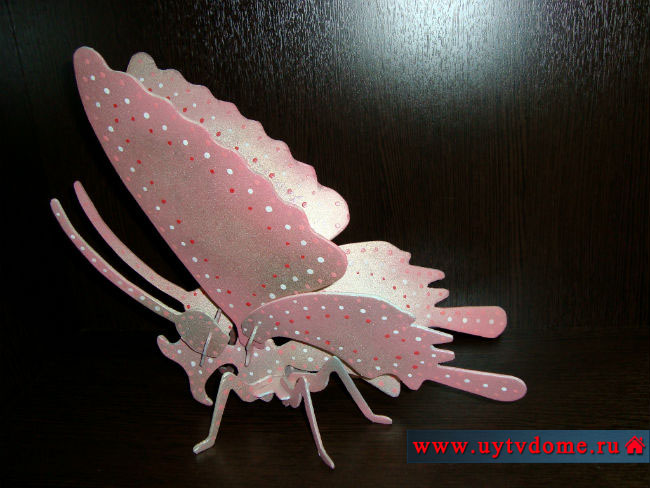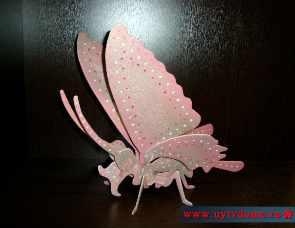 Уважаемые читатели, сегодня мы показали Вам, как сделать бабочку, причем не простую, а объемную и довольно крупную. Такая бабочка однозначно найдет местечко в интерьере дома или квартиры, так как выглядит ярко и эффектно.