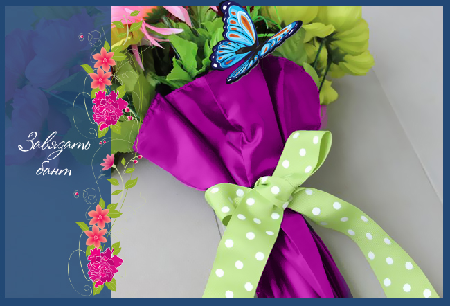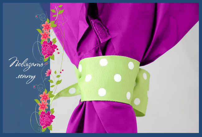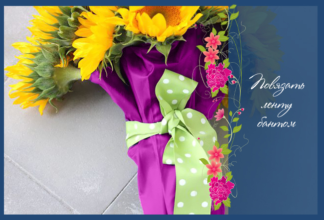 Когда все отделы будут заполнены цветами, обвязываем зонтик снизу лентой, не забыв повязать красивый бантик.
