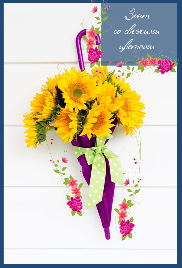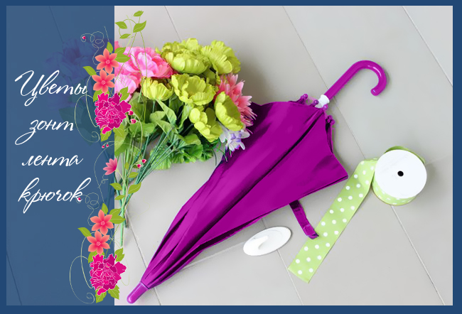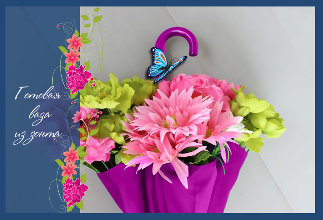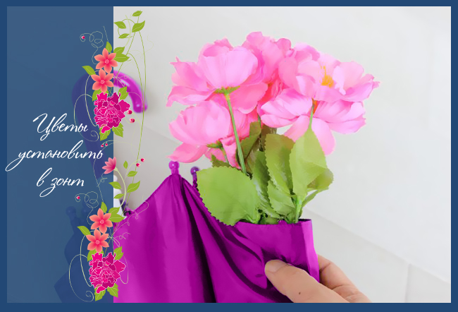 • Вариант №1. Зонт-ваза с искусственными цветами