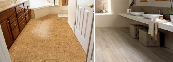Пол в ванной в деревянном доме можно сделать из пробки или ПВХ плитки