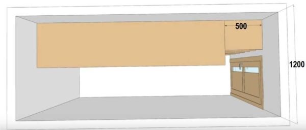 Отделение с опускающейся трубой удобнее делать на боковой стенке, но только если ширина бывшей кладовки позволяет пантографу опускаться. Если нет, переносят этот отдел на стену, противоположную входу.