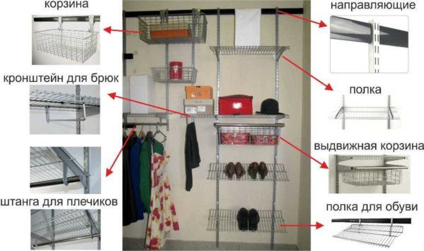 Гардеробная в кладовке: проволочные ящики и полки или куски ЛДСП