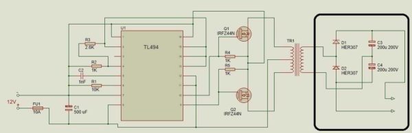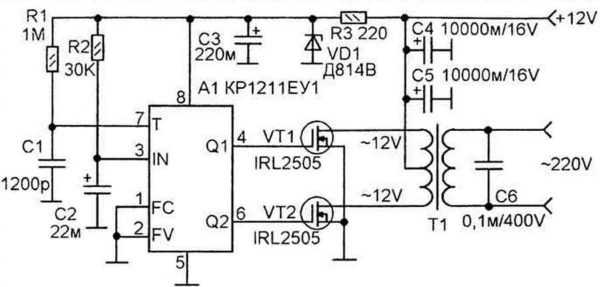Схема повышающего преобразователя напряжения 12-220 В