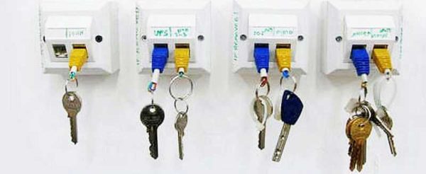 Первый номер — использование коннекторов и подходящих штекеров. Из штекеров делаем брелоки для ключей, а коннекторы «впустую» прикручиваем возле входной двери. Всего дел — на минут двадцать.