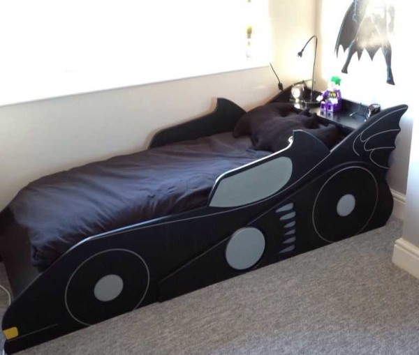 Немногие мальчишки откажутся от кровати-машины. И чтобы порадовать ребенка совсем не обязательно идти в магазин. При помощи фанеры или листа МДФ, красок и лака на водной основе, обычное спальное место превращается в воплощение мечты: детская кровать своими руками в виде бэтмобиля (или любого другого автомобиля) реализуется за неделю неспешной работы по вечерам.