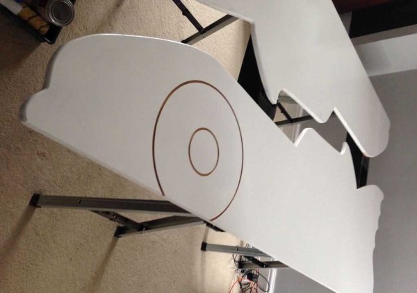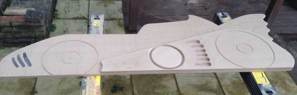 Сверяясь с имеющимся листком, переносите все линии с бумаги на фанеру. Сначала линии тонкие, после того как все более-менее прорисуете, можно очертить результирующие контуры жирной линией — вырезать будет проще. Хоть детали нужны в двойном экземпляре прорисовывать вторую нет смысла: вырезав первую, ее обведем и получим вторую.