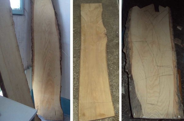 Итак, на пилораме куплены две необрезные доски толщиной 25 мм. На них нанесена разметка — на одной ствол, на другой — ветки.