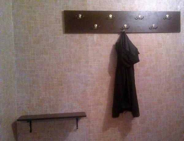 Это настенная вешалка своими руками сделана за два часа (вместе с полкой).