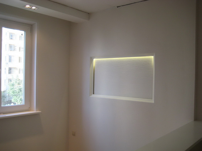 Прокладка эл/проводки. Если решено сделать подсветку ниши, то о способе подключения осветительных приборов нужно подумать заранее. Чтобы не долбить стену под штроб, можно основную часть линии пустить под плинтусом. Кстати, изделия из пластика как раз и предназначены для тайной прокладки проводных (кабельных) коммуникаций. Удобно и современно.