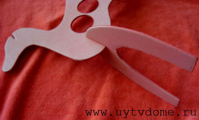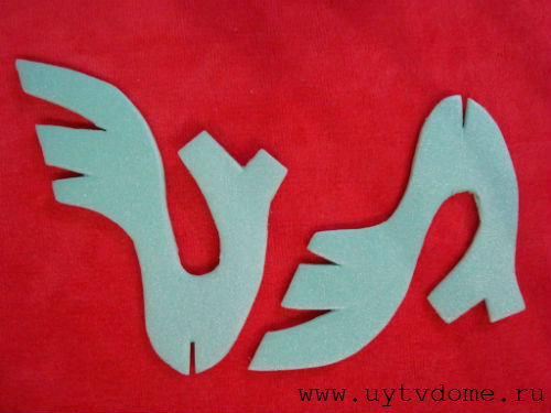 2. Прикладываем вырезанные шаблоны к листу картона или пенополистирола, обводим карандашом каждую деталь. Вырезаем ножницами или канцелярским ножом, также не забываем про прорези для всех деталей (см. фото ниже).