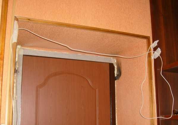 Перед началом работ по отделке дверных откосов прокладывают все коммуникации, которые должны проходить через двери. Например, если оформляется дверной проем входной двери, это может быть провод звонка, освещения над дверью и т.п. Если оформляются откосы межкомнатных дверей, это может быть телефонный кабель или витая пара для подключения интернета.