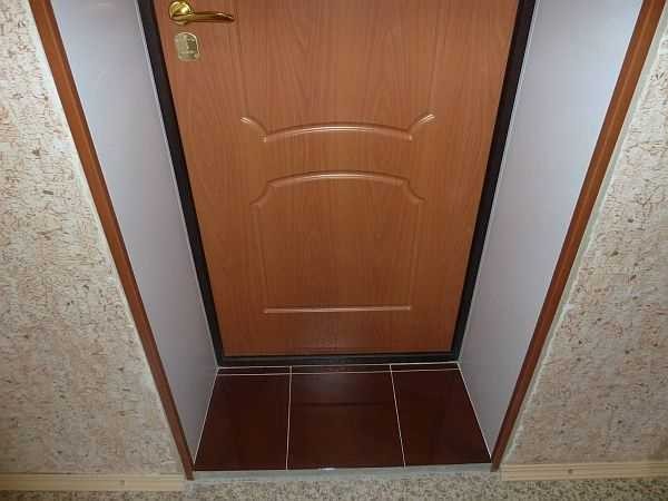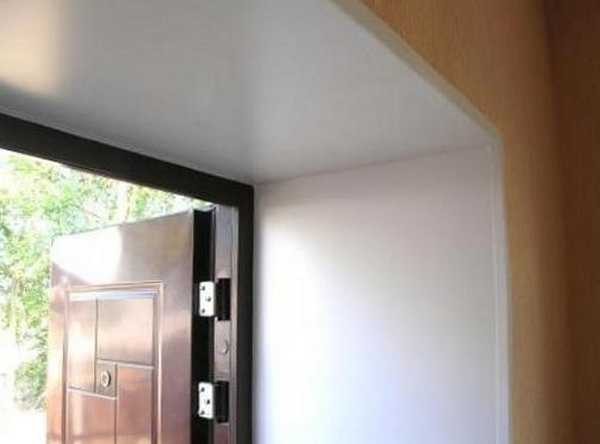 Недостатки у этого способа довольно серьезные. Во-первых, боковые и вертикальные поверхности нужно предварительно выровнять, иначе ровно установить элементы вы не сможете. Во-вторых, есть вероятность того, что заготовка выгнется/прогнется. В-третьих, остаются пустоты. Ну, и самый главный — крепление не самое надежное. Зато дверные откосы сделаны просто и быстро.