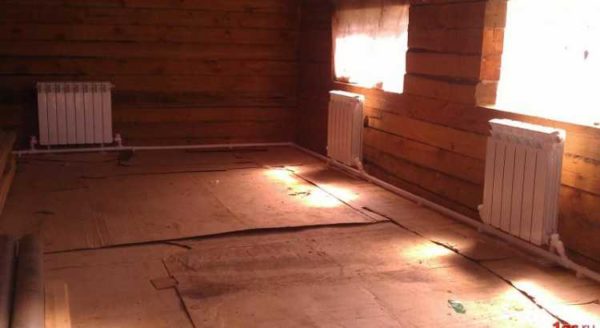 • Трубы прокладываются внизу — по полу или под полом.