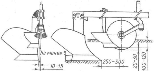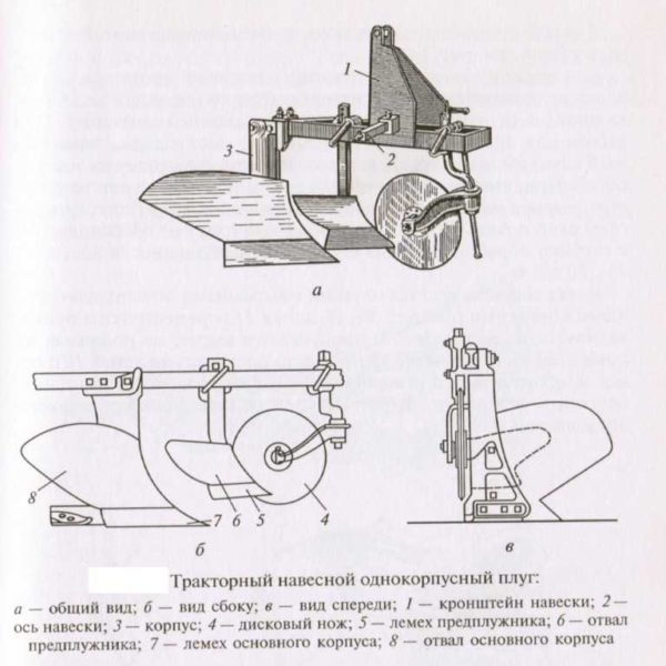 • предплужник — дополнительная режущая часть, срезающая задерненный слой почвы;