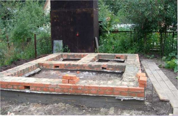 Чаще всего делают бетонно-кирпичный вариант. Он оптимален по затратам, сложности и длительности. Работы проводят так: