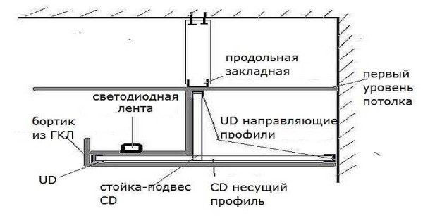 Конструкция короба для подсветки гипоскартонного потолка